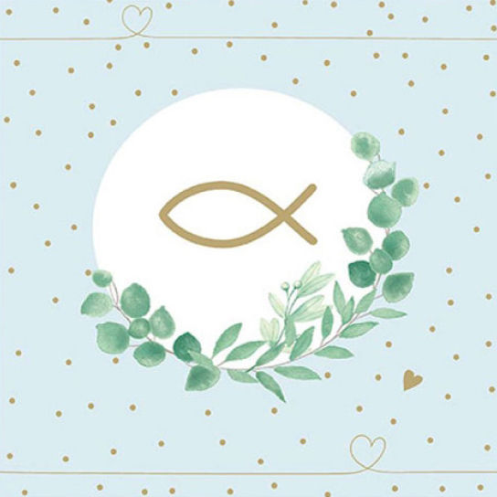 20 Servietten - Goldener Fisch mit Zweig - Blau