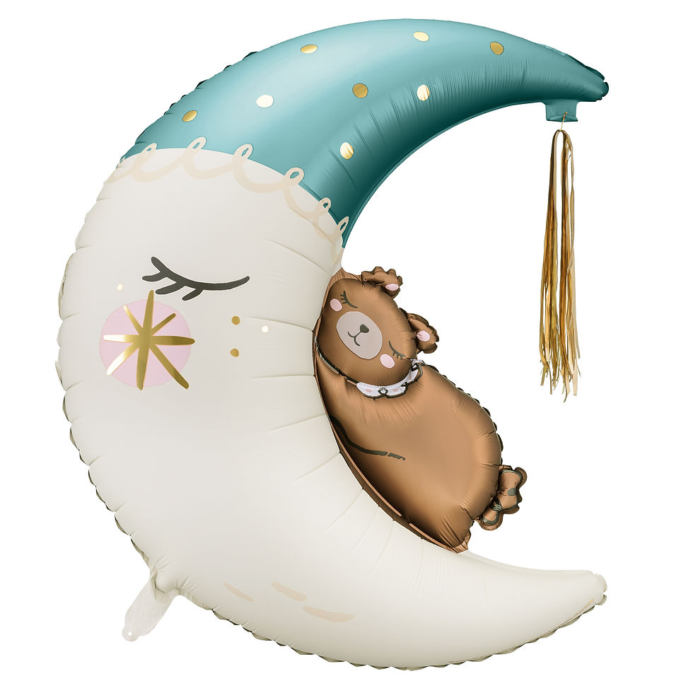 XL Folienballon - Geburt - süßer Bär auf dem Mond - Blau - 71 x 86cm