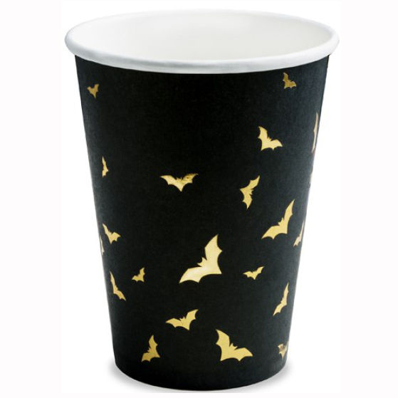 6 Pappbecher - Halloween - goldene Fledermäuse - 220 ml