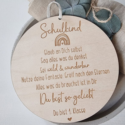 Aufhänger - Türschild aus Holz inklusive Gravur - Schulkind - Regenbogen