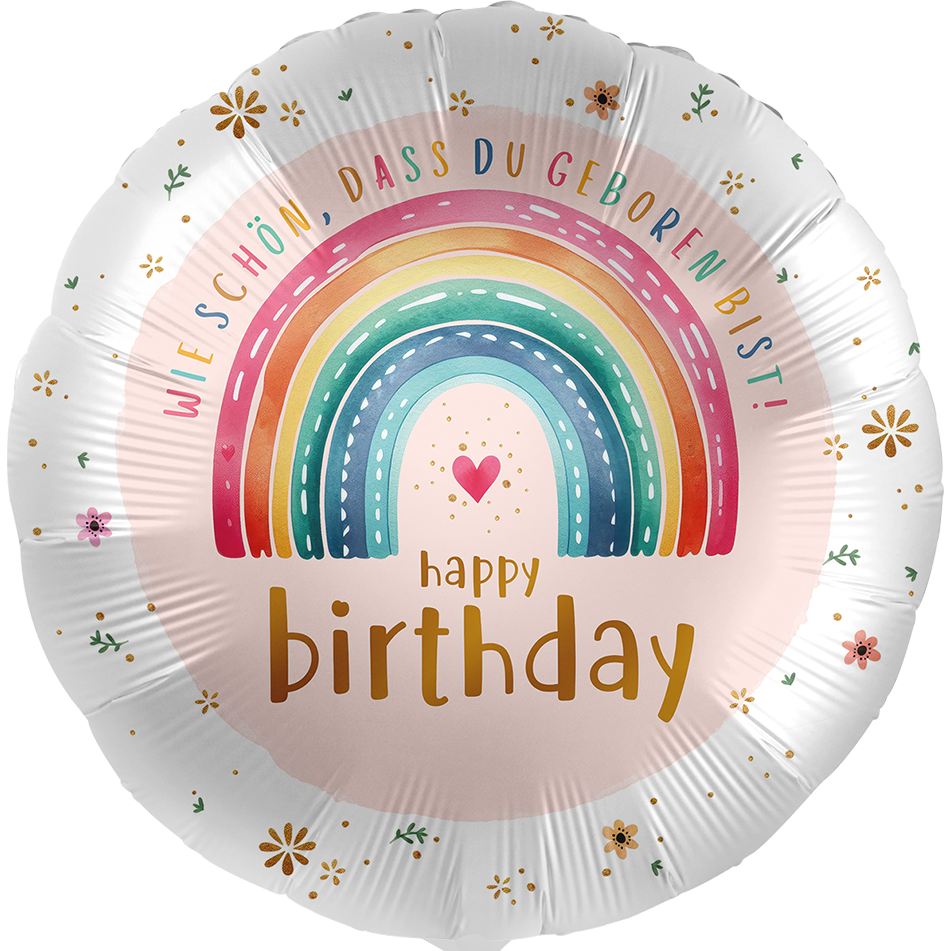 Folienballon - Dotty Rainbow Birthday - Regenbogen - Rund - 43 cm