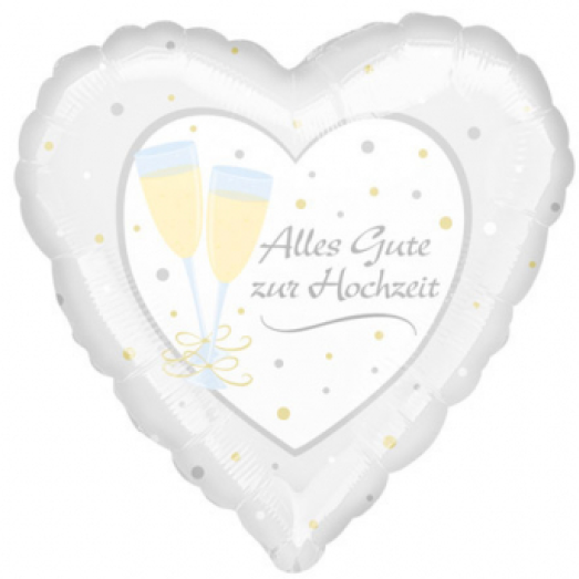 Folienballon - Alles Gute zur Hochzeit - Sektgläser - Herz - 43 cm