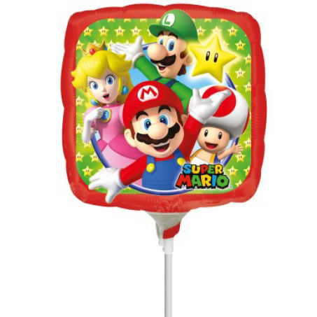 Folienballon am Stab - luftgefüllt - Super Mario - 23 cm