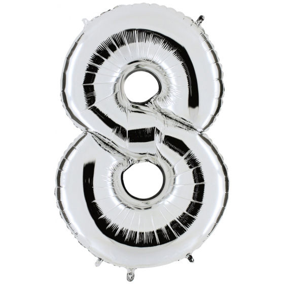 XL Folienballon - Riesenzahl - Acht - Silber - 102 cm