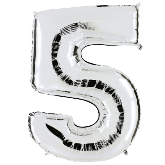 XL Folienballon - Riesenzahl - Fünf - Silber - 102 cm