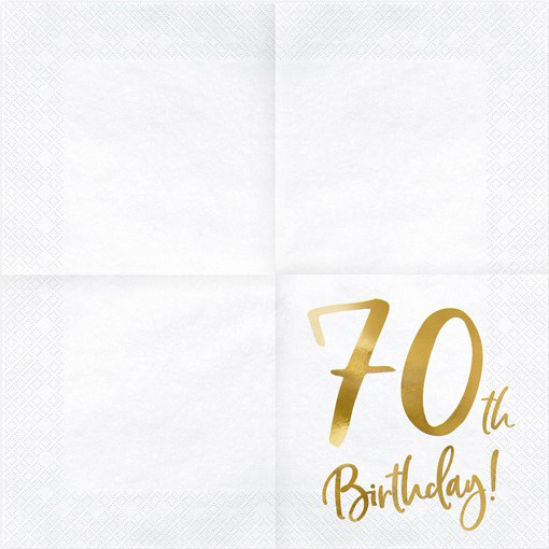 20 Servietten -Happy Birthday - 70. Geburtstag - Gold - 33 x 33 cm