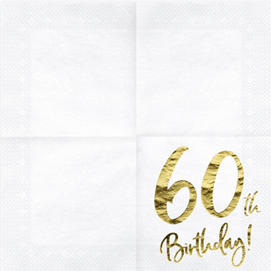 20 Servietten -Happy Birthday - 60. Geburtstag - Gold - 33 x 33 cm